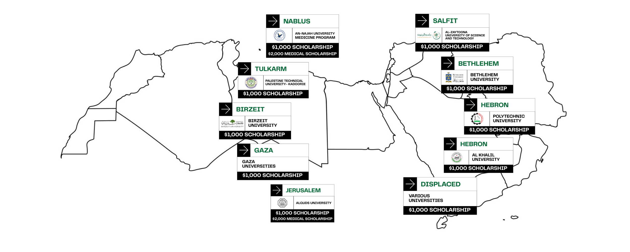 100% of your donation goes to funding scholarships for students in Palestine. Board Members cover all admin costs.