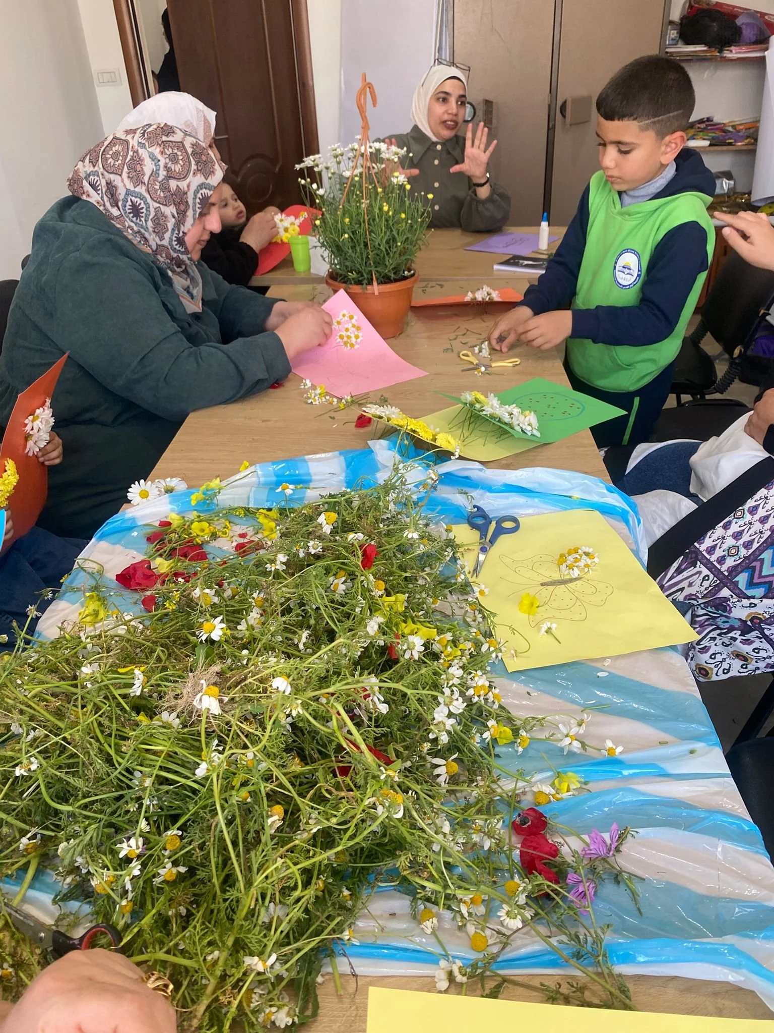 For mothers and children, the day included simple, expressive activities such as a flower-based activity and light movement exercises. The sessions were designed as open, safe spaces where participants could engage, talk, and express themselves freely while interacting with the activities. This setting allowed the team to closely observe and identify cases that required special attention. Several cases were identified and referred to our partner, the Family and Child Guidance Center, for specialized psychological support.